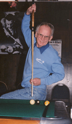 Discovering the sport in 1947, beginning with a one-pocket contest, Fred started his livelihood in a pool career. By pursuing his passion, he became an accomplished professional player as his full time occupation. As the sole provider, he supported his family by his cueing talents for over 20 years. His highly skilled competition was abundant, for Peoria was a wide open gambling river town, and a rich haven for the many professional pool players it created and supported. From the "Roaring Twenties" through the "Hippie Sixties" Peoria was known as "Sin City". Today, it's reputation is better described as the "City of Angels". It was also in an era of time long before pool leagues, professional tours, pool instructors or professional player listings existed or was wanted. In later years, his tournament championships have included the Peoria "All-Around" Open in 1965, Illinois State 9-ball Open in 1979 and the Greater Peoria "14:1" Open in 1981.